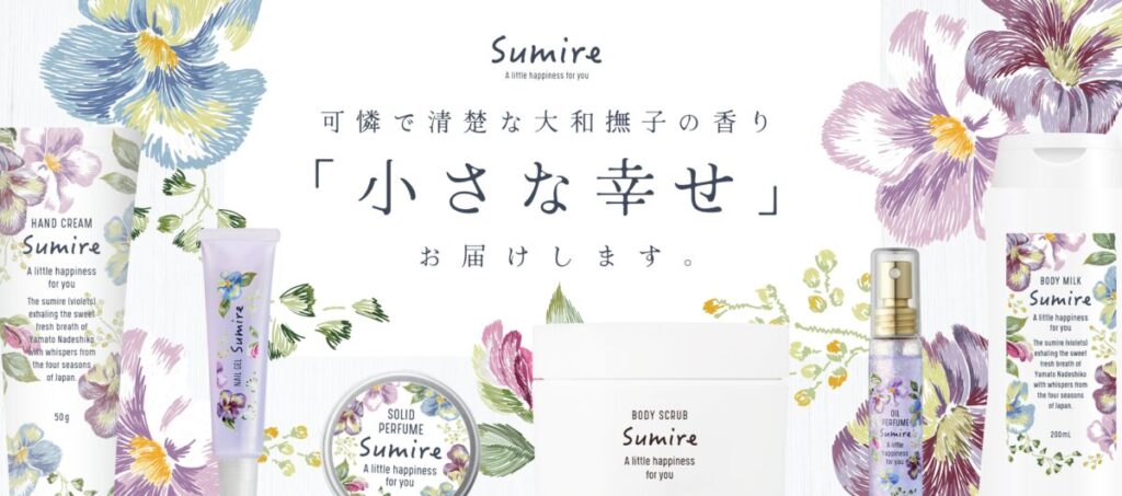 可憐で清楚な、少し甘く愛らしいすみれの香りで「ちいさな幸せ」をあなたにお届けします。